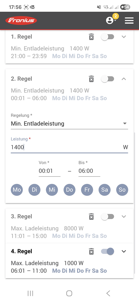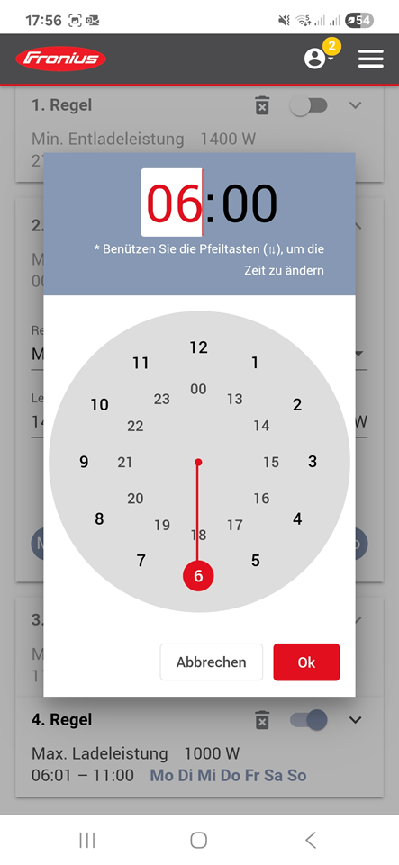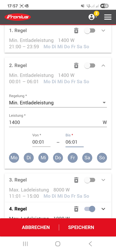 Achtung: Tageswechsel muss geteilt werden (z.B.: 21:00-23:59 // 0:00-6:00) |